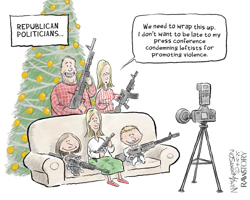 ~~~ Aaron Blake of CNN: “... Donald Trump and his MAGA allies have continued casting the [Charlie Kirk murder] as proof that political violence is the domain of the left — much more so than the right. 'When you look at the problems, the problem is on the left,'  the president told reporters Sunday. 'It’s not on the right.' 'While our side of the aisle certainly has its crazies, it is a statistical fact that most of the lunatics in American politics today are proud members of the far left,' Vice President JD Vance said Monday while guest hosting Kirk’s podcast.... But Trump and his allies are cherry-picking evidence and misleading about recent violent episodes. They’re also casting stones from a glass house.... In fact, Trump has spent the last decade saying conspicuously violent things and often flirting with the prospect of justified violence by his supporters – including as recently as Friday.” ~~~