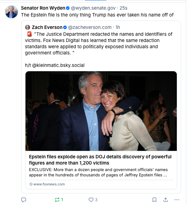 Wyden - Epstein list is only thing Trump has taken his name off of